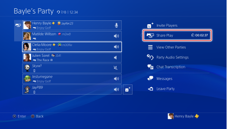 - Share Play stops and the system returns to the party screen when you select [Share Play] > [Leave Share Play].